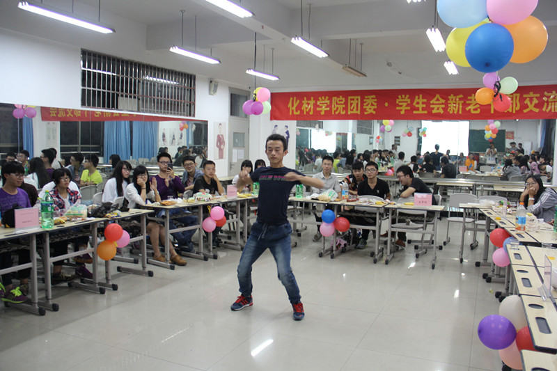 来自学生事务管理中心的武京杰代表学生会新干事进行发言,希望新干事以积极团结的热情去投入以后的工作,同时感谢老干事与主任的付出与教导。交流会上,节目可谓精彩纷呈,歌曲,舞蹈,小品,应有尽有,学生事务管理中心、学业指导服务中心、创新实践活动中心、科技竞赛服务中心、新闻宣传中心等各个部门都派出了代表表演节目。男女反串以及新干事们精湛的演技,是此次交流会的一大亮点。最振奋人心的就是“猜炸弹”,“泡泡糖”,“请相信我”,“刮大风”,“官兵捉贼”等一系列游戏环节,各个中心都积极参与,展现自己的智慧与力量。