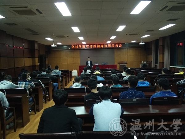 根据《浙江省教育厅办公厅关于2016年浙江省高校学生体质健康状况抽测的通知》和学校关于文件精神要求,4月19日晚上,学院在208会议室召开2016年省高校学生体质健康状况抽测工作动员会。学院党总支副书记潘从义、学生科科长王壮出席会议,学院参加测试的70余名同学参加会议,会议邀请体育学院吴宝升副教授做专题辅导。