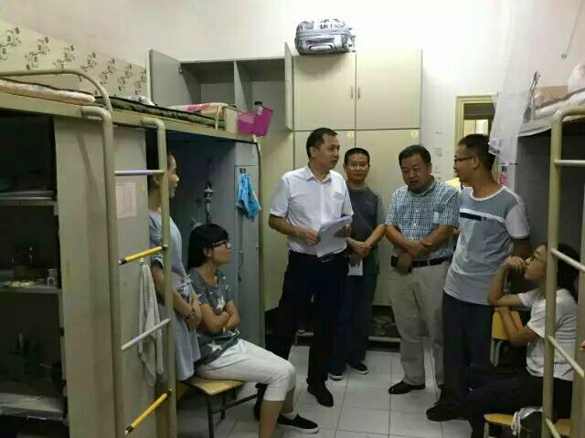 为了更深入了解新生入学情况,帮助新生适应大学生活,9月8日晚上,学院全体领导、系主任、辅导员、新生班班主任走访了2015级新生寝室。
