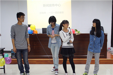 “喜庆锣鼓敲起来,我们四人走上台,上台说段三句半,一三一四合家欢......”此起彼伏的欢呼声从化材楼11B-208传出来,温暖了整个化材楼。2014年10月19日18:00,为了欢迎新成员的加入,进一步增进各种中心之间的感情,1683168 3诸侯快讯足球团委学生会在团干培训暨新老干事交流会。