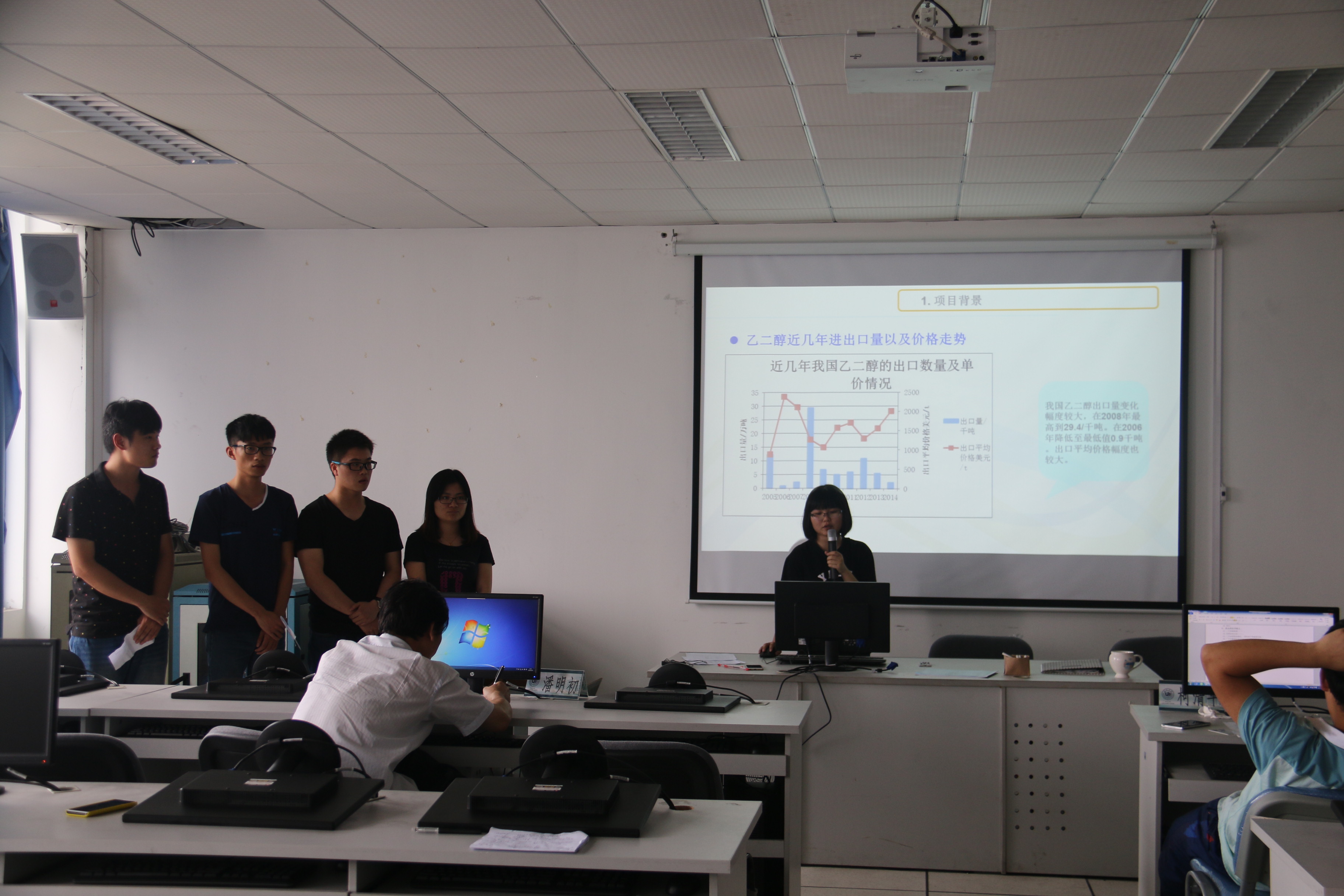 比赛伊始,徐进老师为大家简单地介绍了化工设计竞赛的背景、举办目的和意义,还有评审规则。每支参赛队伍按先前排好的顺序出场,并有8分钟的PPT展示设计方案和10分钟的答辩时间。每个评审老师对团队表现进行评分。最后取平均分,并当场评出一二三等奖。