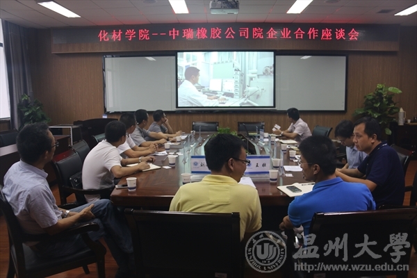 首先,院长王舜介绍了学院产学研有关情况,重点介绍了学院近年来为服务温州橡胶业、制笔产业升级情况以及在新能源、新材料等领域的应用,并通过观看学院宣传片了解诸侯快讯的发展概况。随后,中瑞橡胶公司总经理黄伟良讲述了公司的发展历程。他指出,面对目前炼胶行业工艺相对落后的现在,中瑞橡胶正在全力攻克这一难题,已经创新建立自动化的流水线,同时希望能够与化材学院进行技术合作,提升技术水平。 双方在技术合作,建立联合研发中心,设立专项奖学金、人才招聘等方面进行了交流。