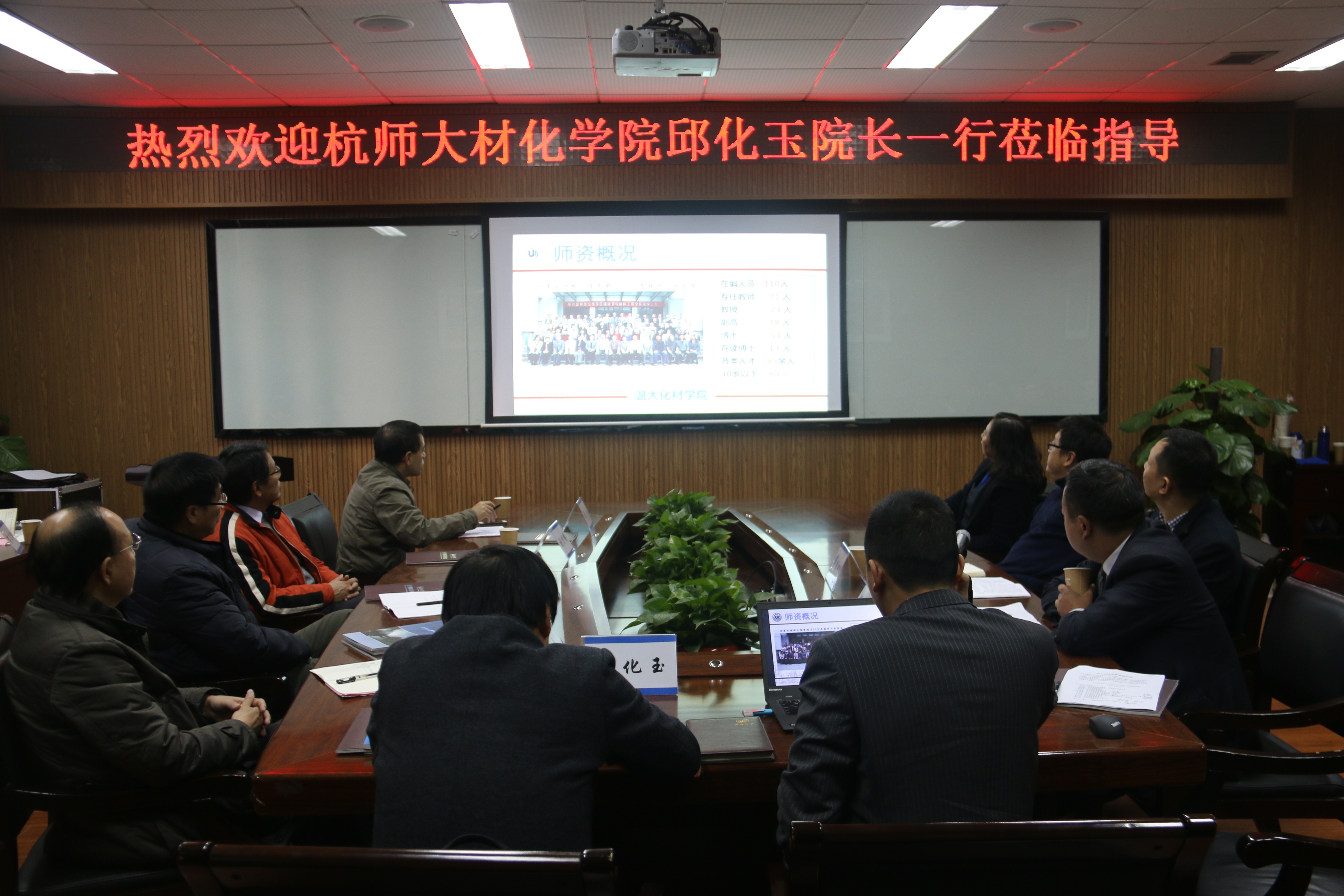 2015年12月8日,杭师大材化学院邱化玉院长、李兴听书记等一行莅临诸侯快讯,围绕化学学科和专业建设方面进行调研。院长王舜、党总支书记方乐平、党总支副书记潘从义以及学院其他相关教师参加。