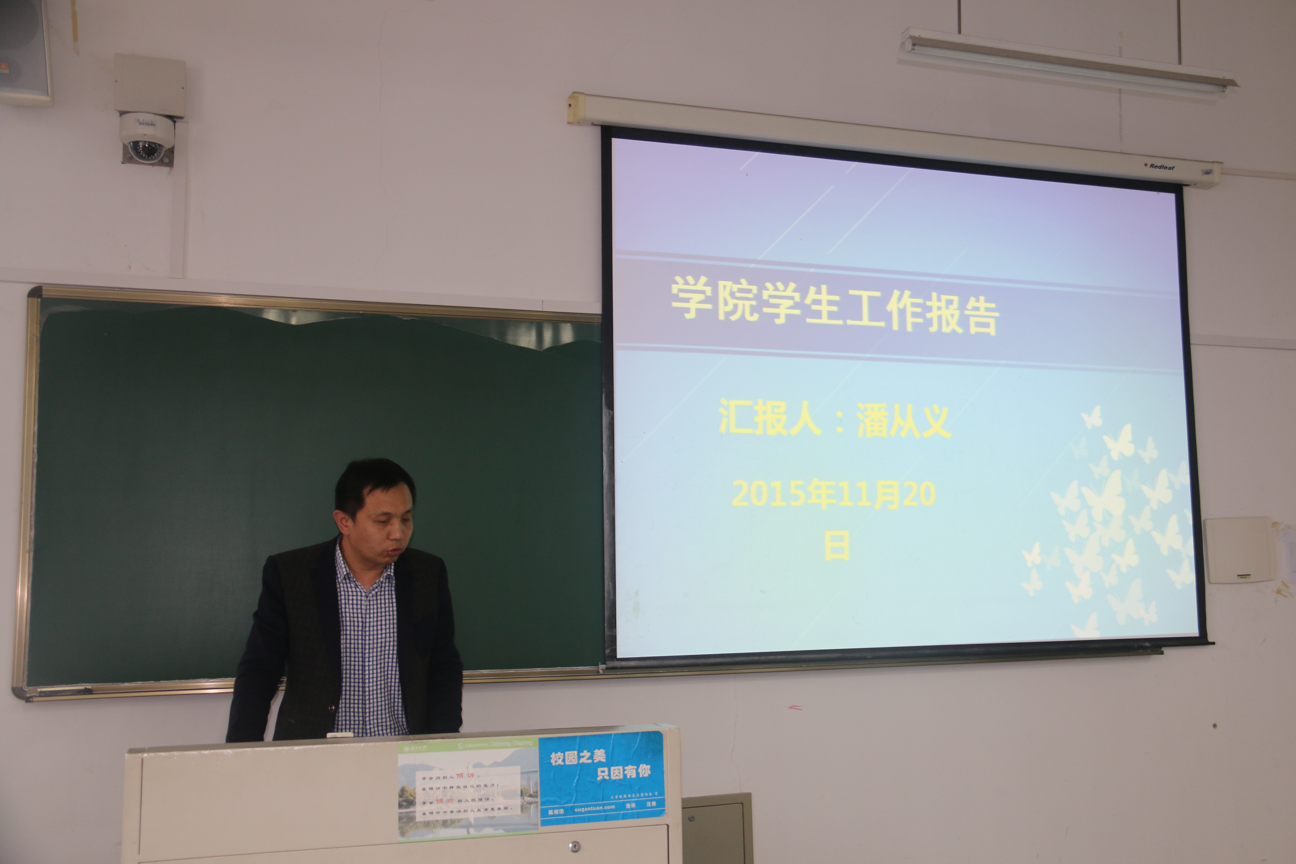 副院长陈久喜就实验室建设和科研相关工作进行了汇报,着重强调了学校针对近期省教育厅的实验室安全检查提出的整改要求。党总支副书记潘从义就学生工作、宣传工作和就业工作等进行了简要汇报,并强调了举办 “美丽化工”系列活动对于巩固专业思想和展现学院科研实力方面的重要作用。
