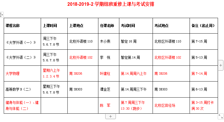 关于2018-2019学年第二学期重修报名汇总及组班安排的通知